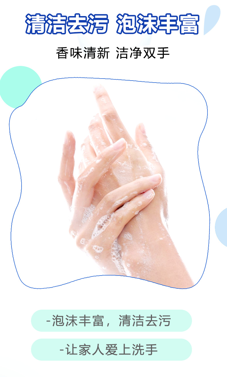 產品說明:清潔去污,泡沫豐富、香味清新、潔凈雙手。